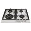Выбор газовой варочной панели чаще всего обусловлен тем, что в частный дом или квартиру проведен именно газ в качестве обогрева. Работать с этой моделью довольно просто, так как мощность нагрева видна невооруженным взглядом — по силе огня в горелке. Количество конфорок в этой модели: 4. Горелки с тройной короной имеют несколько ступеней нагрева — в зависимости от них образуется несколько кругов пламени.