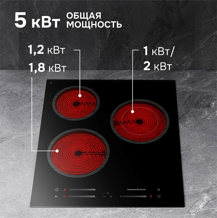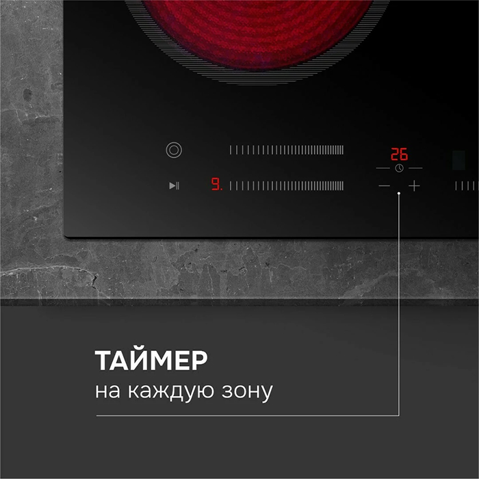 Таймер варочной панели — это устройство, позволяющее задавать время приготовления пищи. По истечении указанного времени таймер подает звуковой сигнал о необходимости отключения конфорки или выключает ее самостоятельно в зависимости от модели. С помощью этой опции можно запрограммировать отключение любой конфорки или всех конфорок одновременно.
