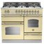 Устройства с тремя духовками также имеют один основной и две дополнительных шкафа разного объема: например, плиты Bertazzoni оснащены большой духовкой объемом 69 литров, средней объемом 54 литра и малой объемом 24 литра. Духовки располагаются в два ряда: две меньшие духовки в одном ряду, большая и ящик для посуды в другом.