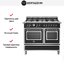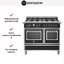 Устройства с тремя духовками также имеют один основной и две дополнительных шкафа разного объема: например, плиты Bertazzoni оснащены большой духовкой объемом 69 литров, средней объемом 54 литра и малой объемом 24 литра. Духовки располагаются в два ряда: две меньшие духовки в одном ряду, большая и ящик для посуды в другом.