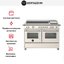 Ширина варочных центров — параметр, которых варьируется в самых больших пределах. Она зависит прежде всего от характеристик модели, в частности, от количества духовок. Производители предлагают модели минимальной шириной 59-60 см с одной духовкой. В магазинах также представлены модели с одной духовкой увеличенной ширины, которая достигает 90 см. Такую же ширину могут иметь варочные центры с двумя духовками, расположенными бок о бок. Модели Lofra с тремя духовками имеют ширину 120 см, а максимальная ширина около 196-200 см отличает модели Restart с дровяной печью и несколькими духовками.