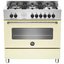 Bertazzoni MAS90 6 MFE S CR T — комбинированный варочный центр в кремовом корпусе. Стальная панель управления устройства дополнена аналоговым термометром для контроля температуры внутри духового шкафа. Газ-контроль горелок исключает возможность топливной утечки при внезапном затухании пламени.