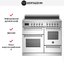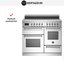 Устройства с тремя духовками также имеют один основной и две дополнительных шкафа разного объема: например, плиты Bertazzoni оснащены большой духовкой объемом 69 литров, средней объемом 54 литра и малой объемом 24 литра. Духовки располагаются в два ряда: две меньшие духовки в одном ряду, большая и ящик для посуды в другом.