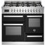 Устройства с тремя духовками также имеют один основной и две дополнительных шкафа разного объема: например, плиты Bertazzoni оснащены большой духовкой объемом 69 литров, средней объемом 54 литра и малой объемом 24 литра. Духовки располагаются в два ряда: две меньшие духовки в одном ряду, большая и ящик для посуды в другом.