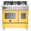 Bertazzoni PRO906MFEDGIT — варочный центр из серии Professional, окрашенный по технологии окраски итальянских автомобилей Lamborgini в желтый глянцевый цвет. Модель оснащена газовой варочной поверхностью из нержавеющей стали с шестью конфорками и двумя электрическими духовками. Несмотря на высокую мощность, варочный центр отличается экономичностью и относится к классу энергопотребления А. На стальной панели управления находятся поворотные программаторы и большой дисплей. В числе конфорок входит двойная конфорка wok мощностью 5 кВт, посуда размещается на решетках из чугуна. Внизу расположен выдвижной ящик с плавным закрыванием. Объем основной духовки с 11 режимами работы составляет 69 л, вспомогательной с 6 режимами работы — 38 л. Оба шкафа оснащены электрогрилем с возможностью приготовления на вертеле.