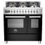 Bertazzoni PRO906MFEDNET — отдельно стоящий варочный центр матового черного цвета с газовыми конфорками и двумя электрическими духовками. Модель шириной 90 см оснащена электронно-механической панелью управления из нержавеющей стали со стильными поворотными переключателями и сенсорным дисплеем. В нижней части имеется вместительный ящик для посуды. Варочная панель также изготовлена из стали и дополнена устойчивыми чугунными решетками. Конфорки, включая двухрядную конфорку WOK, оборудованы электроподжигом и защитой «газ-контроль». Основная духовка объемом 69 литров имеет 11 режимов работы, в том числе гриль и конвекцию, а вспомогательная объемом 38 литров — 6 режимов работы. Откидные дверцы с тройным остеклением закрываются плавно благодаря амортизатору. На двух уровнях имеются телескопические направляющие.