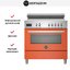 Электрический варочный центр Bertazzoni PRO95I1EART в необычном оранжевом цвете оснащен индукционной варочной поверхностью и электрическим духовым шкафом. Индукционная панель из стеклокерамики оборудована 5 конфорками и обеспечивает быстрый и равномерный прогрев, а благодаря функции Booster мощность одной из них можно увеличить для сокращения времени закипания. Панель управления выполнена в ретро стиле, но дополнена электронным дисплеем и регулировкой режимов работы. Каждая зона нагрева имеет 9 уровней мощности и дополнена датчиками остаточного тепла.