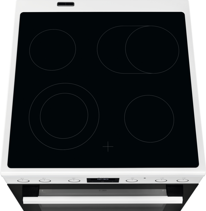 В данной модели установлена электрическая варочная поверхность — эффективный нагрев, специальные механизмы для защиты вас от ожогов, плавная регулировка мощности. Стандартное количество конфорок — 4 штуки — подходит большинству пользователей. Панель выполнена из прочной стеклокерамики, которая обеспечивает надежность и долгий срок службы; за ней необходимо тщательно ухаживать. Вы можете контролировать и менять силу жара конфорок на панели управления, количество ступеней в этой модели: 9.