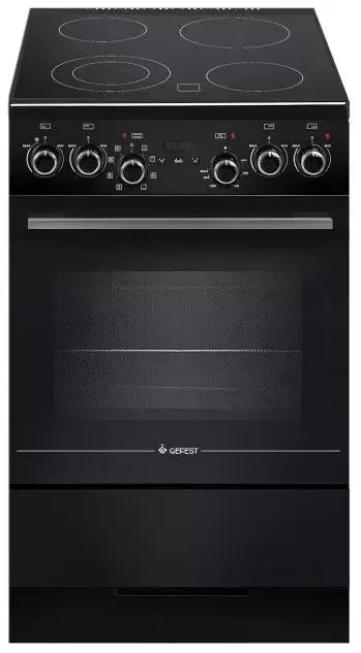 Электрическая плита Gefest 5560-03 0057 — отличный выбор как для квартиры, так и для частного дома. Цвет корпуса черный, он гармонично сочетается с мебелью и техникой похожих оттенков, а также может интересно выглядеть на контрасте с ними. Для управления используется удобная и понятная электронная система. Благодаря ей выбирать режимы приготовления и настраивать параметры температуры очень просто. Основная информация о процессе отображается на дисплее. Переключатели не только выполняют техническую функцию, но и поддерживают общий дизайн; тип элементов: сенсорные + поворотные.