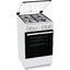 Газовая плита Gorenje GGI5A21WH выполнена в строгом белом цвете и рассчитана на стандартный кухонный модуль 50 см по ширине. Компактные габариты 85×50×59.4 см делают прибор удобным для небольших помещений. Передняя панель изготовлена из крашеного металла с аналоговыми поворотными переключателями, что придаёт классический и понятный внешний вид. Крышка варочной поверхности — закалённое стекло, она защищает конфорки и служит рабочей площадкой при закрытии. Верхняя защитная панель предотвращает попадание брызг на стену и облегчает уход.