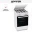 Комбинированная плита Gorenje GK5A42WF-B представлена в лаконичном белом цвете и компактных габаритах 85×50×59.4 см, что делает её удачным решением для кухни любой планировки. Дизайн выполнен в сдержанном стиле: крашеная металлическая панель управления с поворотными ручками гармонично сочетается со стеклянной вставкой в дверце. Верхняя защитная панель и металлическая крышка варочной поверхности придают прибору аккуратный законченный вид и облегчают уход за внешней поверхностью.