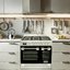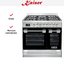 Выглядит как солидная и продуманная кухонная плита в стиле Avantgarde Pro: корпус и лицевая панель выполнены в цвете нержавеющей стали, дверца духовки — откидная с тремя слоями стекла и сплошным внутренним стеклом, а фурнитура выдержана в тон основной отделки. Поверхность варочной панели из нержавеющей стали дополнена составной чугунной решёткой и отдельной чугунной WOK-решёткой, что подчёркивает профессиональную направленность прибора. Внизу предусмотрен выдвижной ящик для посуды, а общие габариты 96×90×60 см делают плиту заметным, но гармоничным элементом кухни.