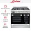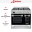 Функционально это газо‑электрическое устройство: газовая варочная часть на 5 конфорок с автоматическим электроподжигом и трёхконтурной конфоркой для интенсивного нагрева, центральная конфорка с мощностью 3.7 кВт и диаметром 130 мм, дополнительные конфорки распределены по мощностям 3, 2 и 1 кВт. Духовые камеры электрические — две секции объёмом 68 и 36 литров, суммарный объём 104 л; управление электронно‑механическое с дисплеем, электронными часами, сенсорными и поворотными переключателями, таймером с функцией отключения. В печах реализованы 12 режимов работы: верхний и нижний нагрев, комбинированный режимы с вентилятором, гриль с конвекцией, разморозка и другие; регулировка температуры от 50 до 250 °C, есть вертел и инфракрасный гриль с опцией малого гриля. Для удобства — внутренняя подсветка, пять уровней приготовления и пять съёмных направляющих для противней.