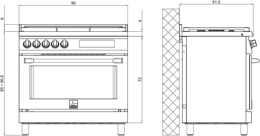 Ширина варочных центров — параметр, которых варьируется в самых больших пределах. Она зависит прежде всего от характеристик модели, в частности, от количества духовок. Производители предлагают модели минимальной шириной 59-60 см с одной духовкой. В магазинах также представлены модели с одной духовкой увеличенной ширины, которая достигает 90 см. Такую же ширину могут иметь варочные центры с двумя духовками, расположенными бок о бок. Модели Lofra с тремя духовками имеют ширину 120 см, а максимальная ширина около 196-200 см отличает модели Restart с дровяной печью и несколькими духовками.