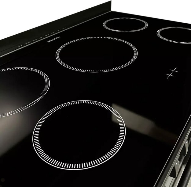 В данной модели установлена индукционная варочная поверхность — эффективный нагрев, специальные механизмы для защиты вас от ожогов, плавная регулировка мощности. Увеличенное число конфорок подойдет большой семье или любителям готовить для массового дружеского застолья. Панель выполнена из прочной стеклокерамики, которая обеспечивает надежность и долгий срок службы; за ней необходимо тщательно ухаживать. Вы можете контролировать и менять силу жара конфорок на панели управления, количество ступеней в этой модели: 4. Благодаря специальной функции Booster можно кратковременно увеличить мощность до максимума, если того требует технология приготовления блюда.