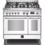 Устройства с тремя духовками также имеют один основной и две дополнительных шкафа разного объема: например, плиты Bertazzoni оснащены большой духовкой объемом 69 литров, средней объемом 54 литра и малой объемом 24 литра. Духовки располагаются в два ряда: две меньшие духовки в одном ряду, большая и ящик для посуды в другом.