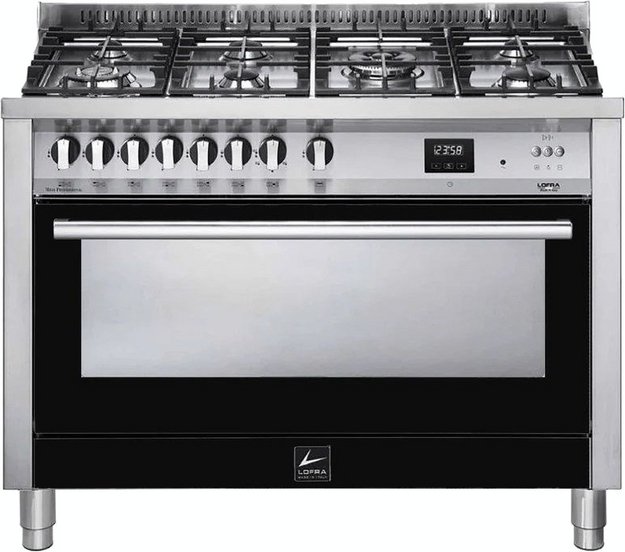 Газовая плита Lofra PNMG126GVGT/2Ci — отличный выбор как для квартиры, так и для частного дома. Цвет корпуса черный, он гармонично сочетается с мебелью и техникой похожих оттенков, а также может интересно выглядеть на контрасте с ними. Для управления используется удобная и понятная электронная система. Благодаря ей выбирать режимы приготовления и настраивать параметры температуры очень просто. Основная информация о процессе отображается на дисплее. Переключатели не только выполняют техническую функцию, но и поддерживают общий дизайн; тип элементов: сенсорные + поворотные.