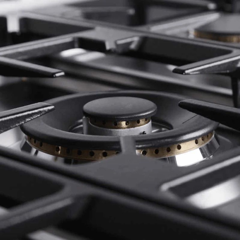 Поверхность оснащена семью газовыми горелками разной интенсивности: от мощных зон для быстрого закипания до умеренных — для длительного томления или поддержания тепла. Такая конфигурация даёт возможность одновременно готовить несколько блюд с индивидуальными требованиями к нагреву, не ограничивая кулинарную свободу даже при масштабных застольях.