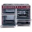 Устройства с тремя духовками также имеют один основной и две дополнительных шкафа разного объема: например, плиты Bertazzoni оснащены большой духовкой объемом 69 литров, средней объемом 54 литра и малой объемом 24 литра. Духовки располагаются в два ряда: две меньшие духовки в одном ряду, большая и ящик для посуды в другом.
