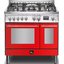 Устройства с тремя духовками также имеют один основной и две дополнительных шкафа разного объема: например, плиты Bertazzoni оснащены большой духовкой объемом 69 литров, средней объемом 54 литра и малой объемом 24 литра. Духовки располагаются в два ряда: две меньшие духовки в одном ряду, большая и ящик для посуды в другом.