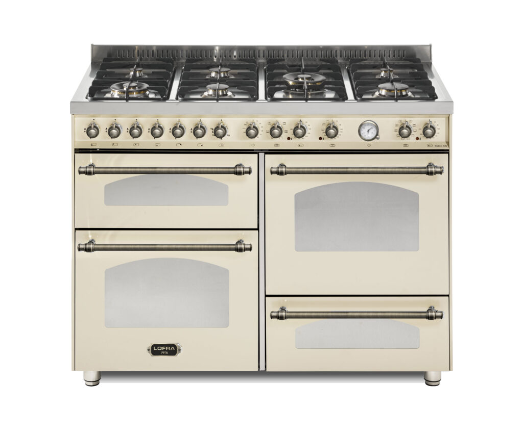 Ширина варочных центров — параметр, которых варьируется в самых больших пределах. Она зависит прежде всего от характеристик модели, в частности, от количества духовок. Производители предлагают модели минимальной шириной 59-60 см с одной духовкой. В магазинах также представлены модели с одной духовкой увеличенной ширины, которая достигает 90 см. Такую же ширину могут иметь варочные центры с двумя духовками, расположенными бок о бок. Модели Lofra с тремя духовками имеют ширину 120 см, а максимальная ширина около 196-200 см отличает модели Restart с дровяной печью и несколькими духовками.