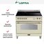 Устройства с тремя духовками также имеют один основной и две дополнительных шкафа разного объема: например, плиты Bertazzoni оснащены большой духовкой объемом 69 литров, средней объемом 54 литра и малой объемом 24 литра. Духовки располагаются в два ряда: две меньшие духовки в одном ряду, большая и ящик для посуды в другом.