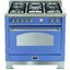 Газовая плита Lofra из серии Dolcevita нежного лавандового цвета подходит классическому интерьеру в пастельных тонах. Газовая варочная поверхность работает с автоматическим поджигом. 5 конфорок разного размера и мощности, одна из них — зона WOK. Электрическая духовка оснащена грилем, в комплекте вертел, противень и 2 решетки.