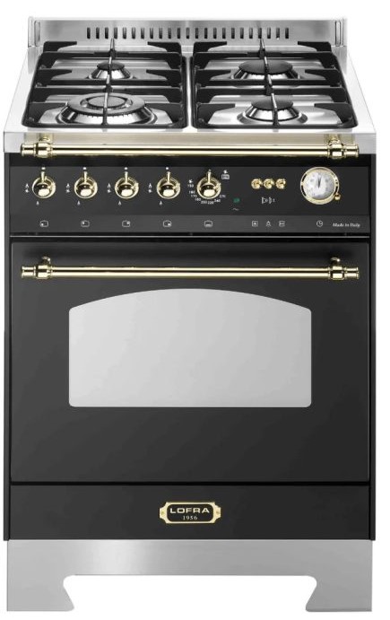 Газовая плита Lofra RNM66GVGT/Ci Brass — отличный выбор как для квартиры, так и для частного дома. Цвет корпуса черный, он гармонично сочетается с мебелью и техникой похожих оттенков, а также может интересно выглядеть на контрасте с ними. Для управления используется удобная и понятная механическая система. Благодаря ей выбирать режимы приготовления и настраивать параметры температуры очень просто. Переключатели не только выполняют техническую функцию, но и поддерживают общий дизайн; тип элементов: поворотные.