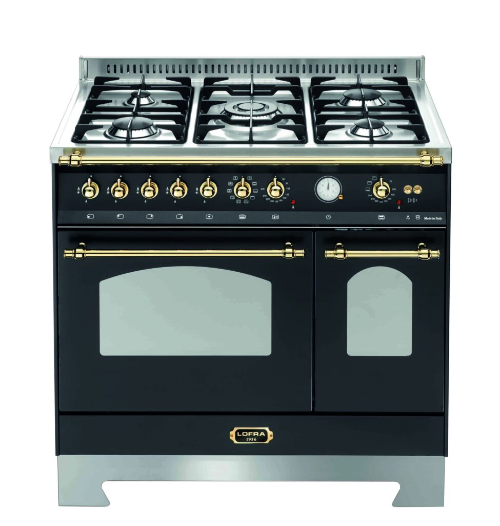 Комбинированная плита Lofra RNMD96GVGTE/Ci Brass — отличный выбор как для квартиры, так и для частного дома. Цвет корпуса черный, он гармонично сочетается с мебелью и техникой похожих оттенков, а также может интересно выглядеть на контрасте с ними. Для управления используется удобная и понятная механическая система. Благодаря ей выбирать режимы приготовления и настраивать параметры температуры очень просто. Переключатели не только выполняют техническую функцию, но и поддерживают общий дизайн; тип элементов: поворотные.