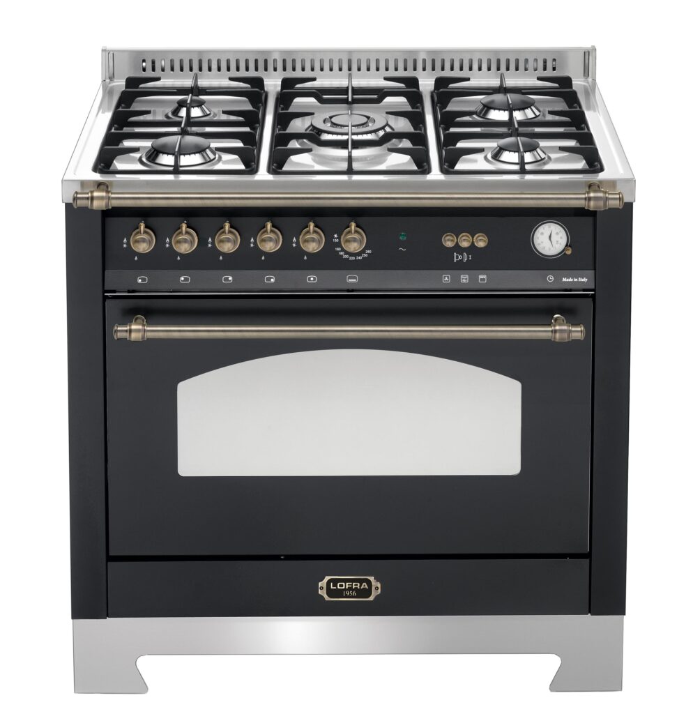Газовая плита Lofra RNMG96GVGT/Ci Bronze — отличный выбор как для квартиры, так и для частного дома. Цвет корпуса черный, он гармонично сочетается с мебелью и техникой похожих оттенков, а также может интересно выглядеть на контрасте с ними. Для управления используется удобная и понятная механическая система. Благодаря ей выбирать режимы приготовления и настраивать параметры температуры очень просто. Переключатели не только выполняют техническую функцию, но и поддерживают общий дизайн; тип элементов: поворотные.