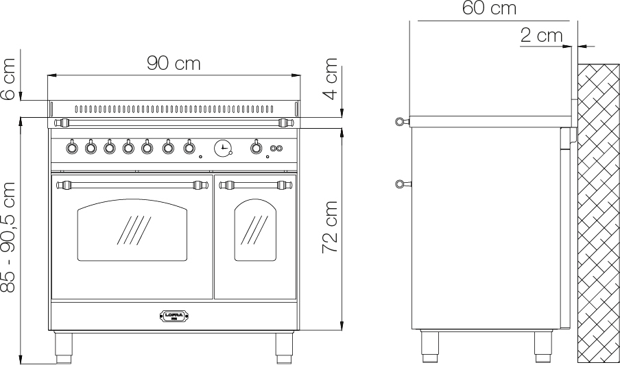Ширина варочных центров — параметр, которых варьируется в самых больших пределах. Она зависит прежде всего от характеристик модели, в частности, от количества духовок. Производители предлагают модели минимальной шириной 59-60 см с одной духовкой. В магазинах также представлены модели с одной духовкой увеличенной ширины, которая достигает 90 см. Такую же ширину могут иметь варочные центры с двумя духовками, расположенными бок о бок. Модели Lofra с тремя духовками имеют ширину 120 см, а максимальная ширина около 196-200 см отличает модели Restart с дровяной печью и несколькими духовками.