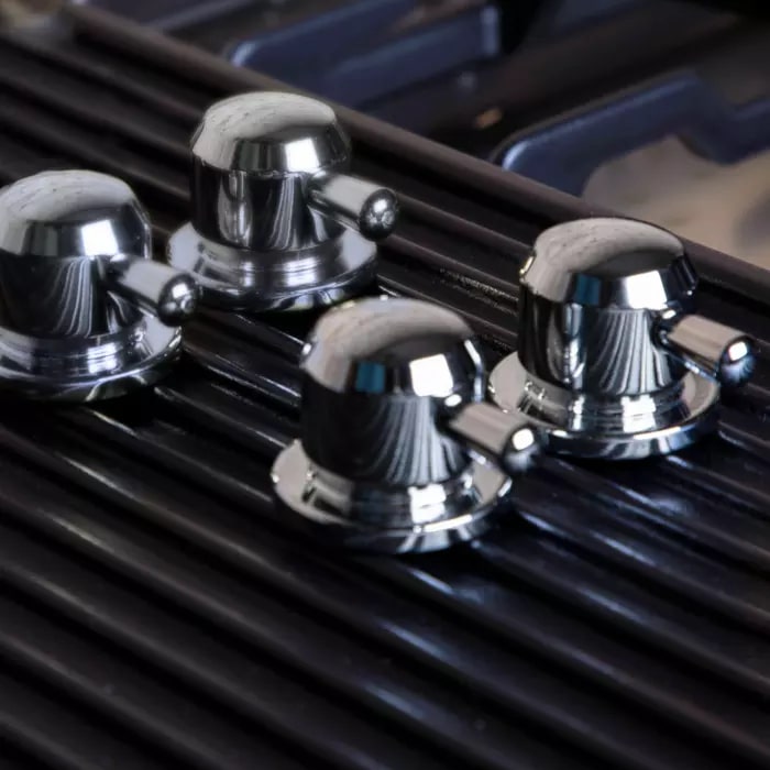Модели в классическом, кантри, ретро-стиле оснащаются переключателями в рукоятками из металла, в том числе бронзы, латуни, или из термостойкого пластика. Эти элементы управления не только просты, хорошо всем знакомы и надежны, но и способны подчеркнуть дизайн изделия. Минус их в том, что сложные выступающие детали заметно неудобны в очистке. Подобные переключатели используются в варочных центрах в современном стиле: для удобства в уходе они зачастую делаются утапливаемыми. При утапливании они не выступают над поверхностью панели управления, что облегчает ее очистку.