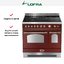 Устройства с тремя духовками также имеют один основной и две дополнительных шкафа разного объема: например, плиты Bertazzoni оснащены большой духовкой объемом 69 литров, средней объемом 54 литра и малой объемом 24 литра. Духовки располагаются в два ряда: две меньшие духовки в одном ряду, большая и ящик для посуды в другом.