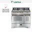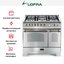Ширина варочных центров — параметр, которых варьируется в самых больших пределах. Она зависит прежде всего от характеристик модели, в частности, от количества духовок. Производители предлагают модели минимальной шириной 59-60 см с одной духовкой. В магазинах также представлены модели с одной духовкой увеличенной ширины, которая достигает 90 см. Такую же ширину могут иметь варочные центры с двумя духовками, расположенными бок о бок. Модели Lofra с тремя духовками имеют ширину 120 см, а максимальная ширина около 196-200 см отличает модели Restart с дровяной печью и несколькими духовками.