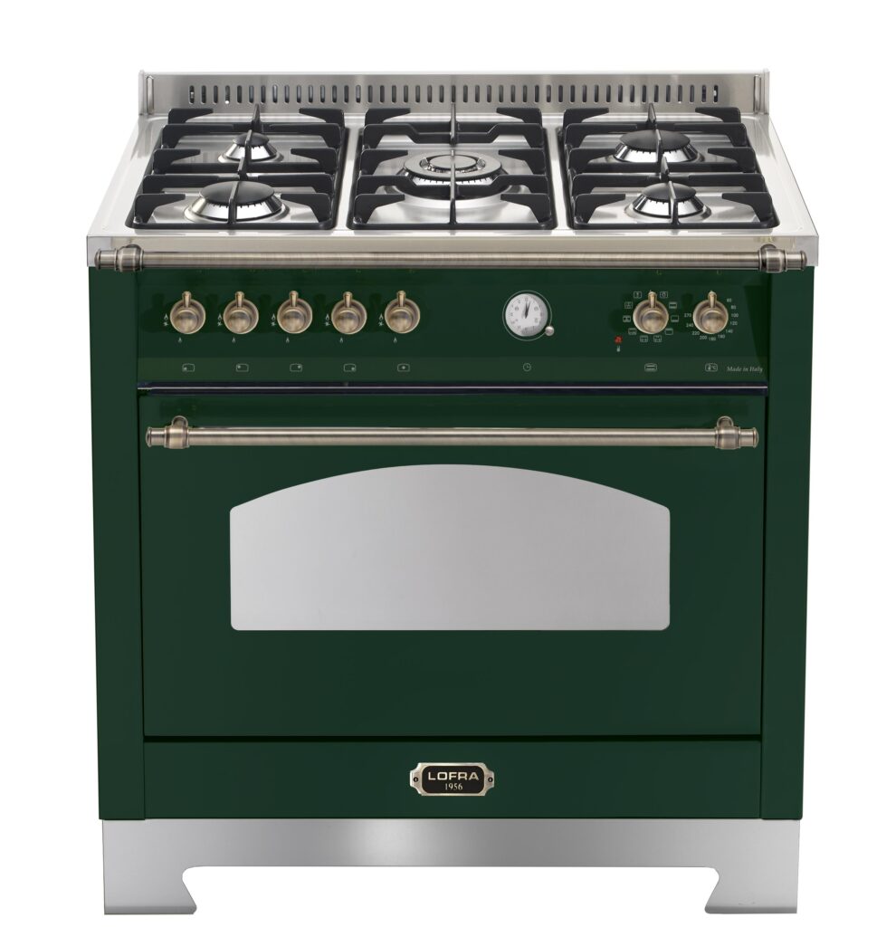 Комбинированная плита Lofra RVG96MFT/Ci Bronze — отличный выбор как для квартиры, так и для частного дома. Цвет корпуса зеленый, он гармонично сочетается с мебелью и техникой похожих оттенков, а также может интересно выглядеть на контрасте с ними. Для управления используется удобная и понятная механическая система. Благодаря ей выбирать режимы приготовления и настраивать параметры температуры очень просто. Переключатели не только выполняют техническую функцию, но и поддерживают общий дизайн; тип элементов: поворотные.