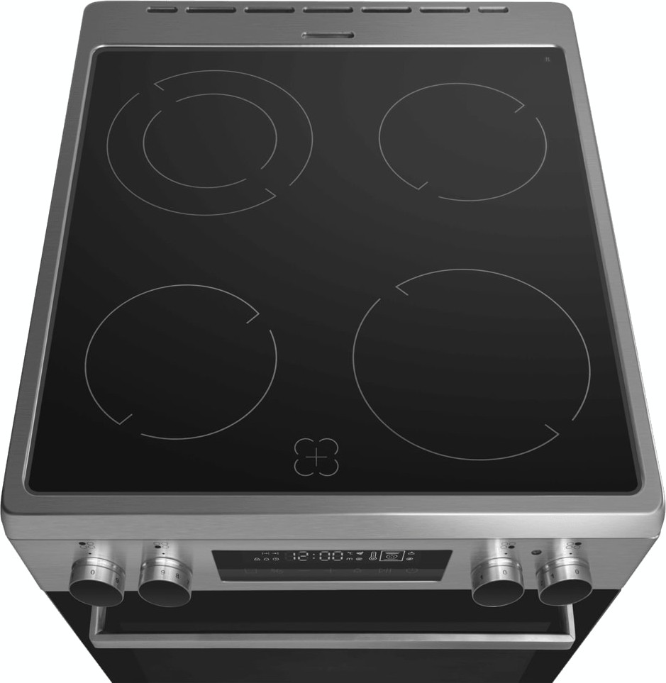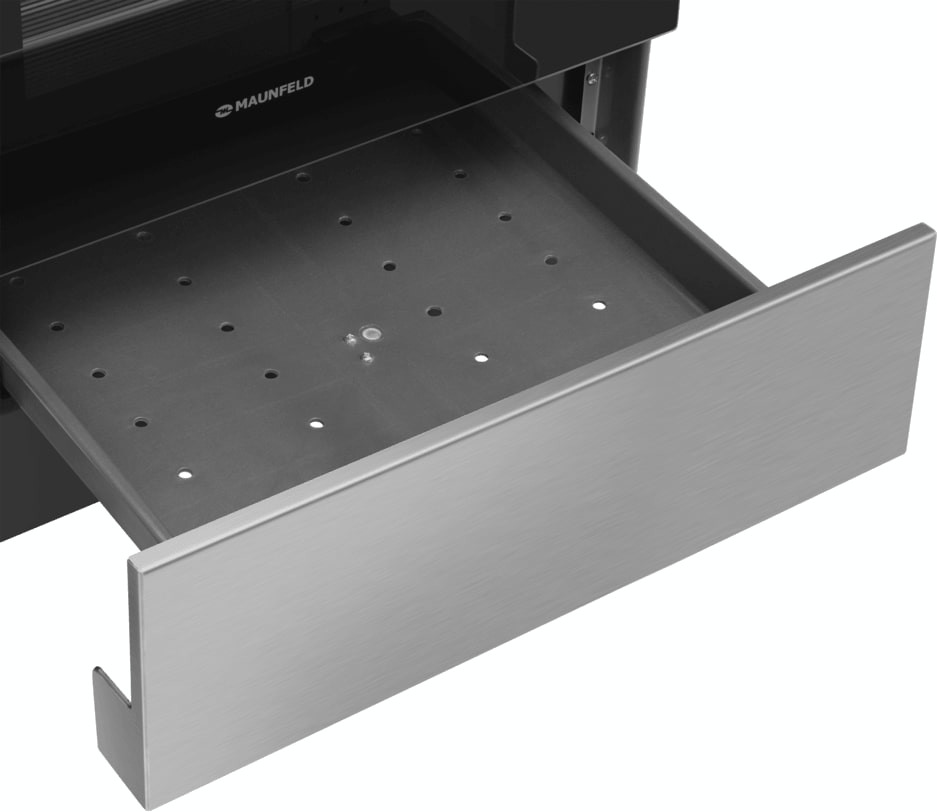 Электрическая плита Maunfeld MEC511CS09TD — отличный выбор как для квартиры, так и для частного дома. Цвет корпуса нержавеющая сталь, он гармонично сочетается с мебелью и техникой похожих оттенков, а также может интересно выглядеть на контрасте с ними. На внутренней поверхности двери расположена таблица доступных рецептов — полезная и необычная фишка. Для управления используется удобная и понятная электронная система. Благодаря ей выбирать режимы приготовления и настраивать параметры температуры очень просто. Основная информация о процессе отображается на дисплее. Переключатели не только выполняют техническую функцию, но и поддерживают общий дизайн; тип элементов: сенсорные + поворотные.
