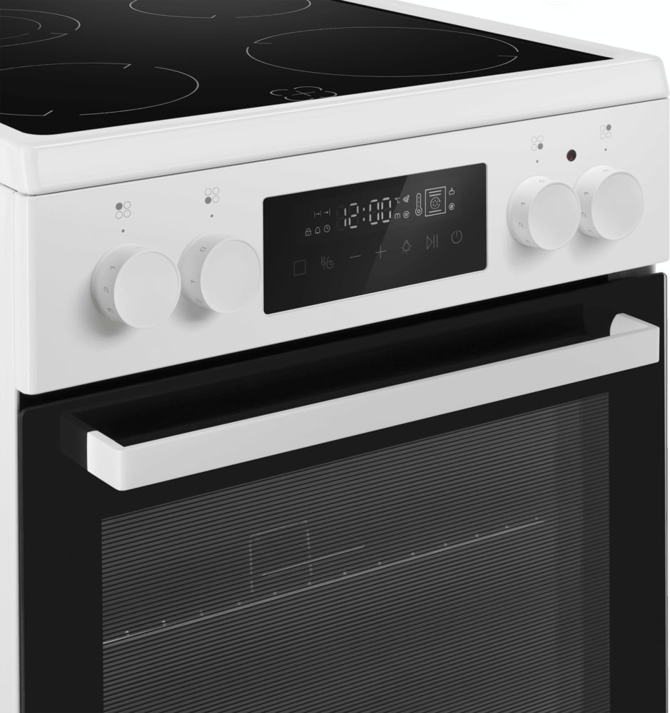 Электрическая плита Maunfeld MEC511CW09TD — отличный выбор как для квартиры, так и для частного дома. Цвет корпуса белый, он гармонично сочетается с мебелью и техникой похожих оттенков, а также может интересно выглядеть на контрасте с ними. На внутренней поверхности двери расположена таблица доступных рецептов — полезная и необычная фишка. Для управления используется удобная и понятная электронная система. Благодаря ей выбирать режимы приготовления и настраивать параметры температуры очень просто. Основная информация о процессе отображается на дисплее. Переключатели не только выполняют техническую функцию, но и поддерживают общий дизайн; тип элементов: сенсорные + поворотные.
