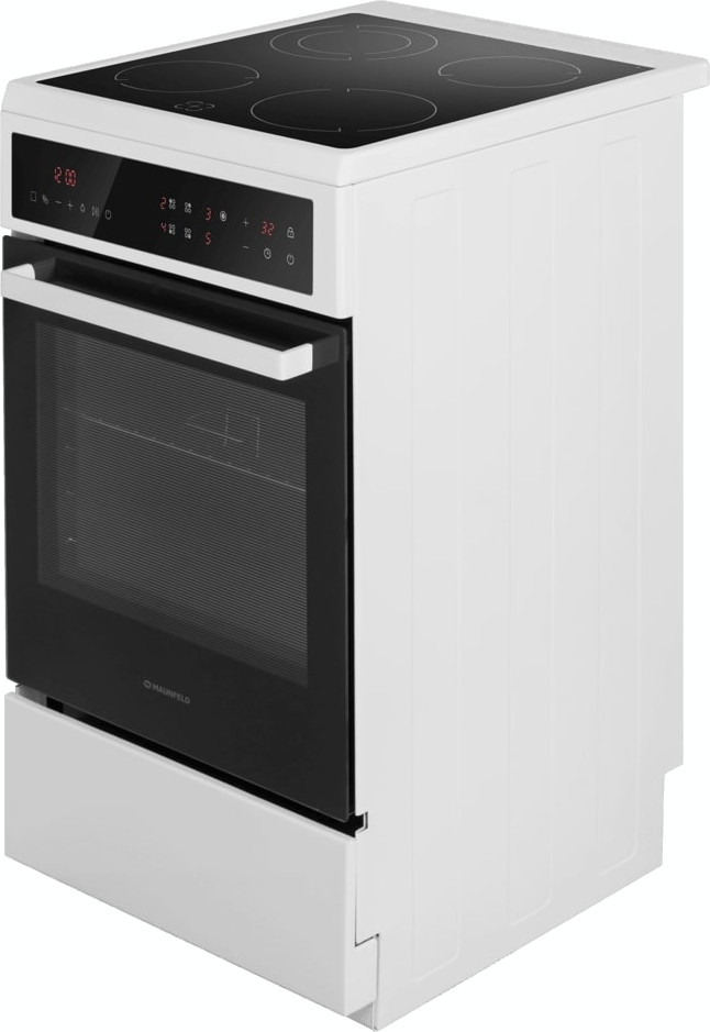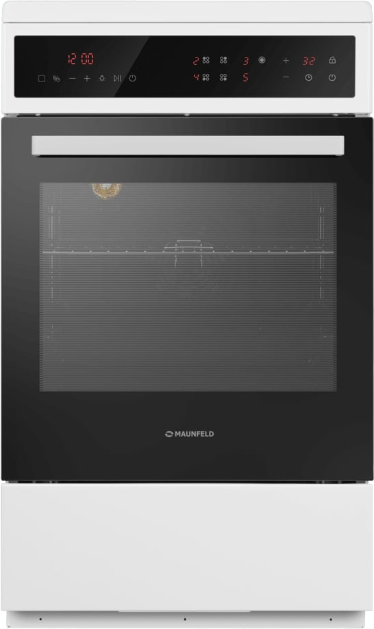 Электрическая плита Maunfeld MEC511CW10TD — отличный выбор как для квартиры, так и для частного дома. Цвет корпуса белый, он гармонично сочетается с мебелью и техникой похожих оттенков, а также может интересно выглядеть на контрасте с ними. На внутренней поверхности двери расположена таблица доступных рецептов — полезная и необычная фишка. Для управления используется удобная и понятная электронная система. Благодаря ей выбирать режимы приготовления и настраивать параметры температуры очень просто. Основная информация о процессе отображается на дисплее. Переключатели не только выполняют техническую функцию, но и поддерживают общий дизайн; тип элементов: сенсорные.