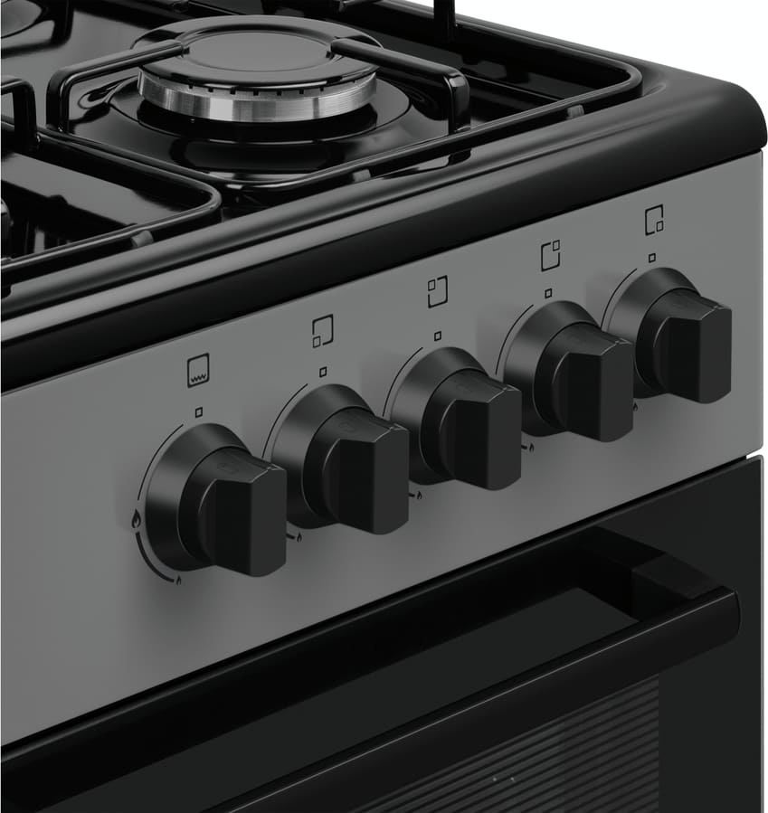 Газовая плита Maunfeld MGC50GEGR01D — отличный выбор как для квартиры, так и для частного дома. Цвет корпуса серый, он гармонично сочетается с мебелью и техникой похожих оттенков, а также может интересно выглядеть на контрасте с ними. Для управления используется удобная и понятная механическая система. Благодаря ей выбирать режимы приготовления и настраивать параметры температуры очень просто. Переключатели не только выполняют техническую функцию, но и поддерживают общий дизайн; тип элементов: поворотные.