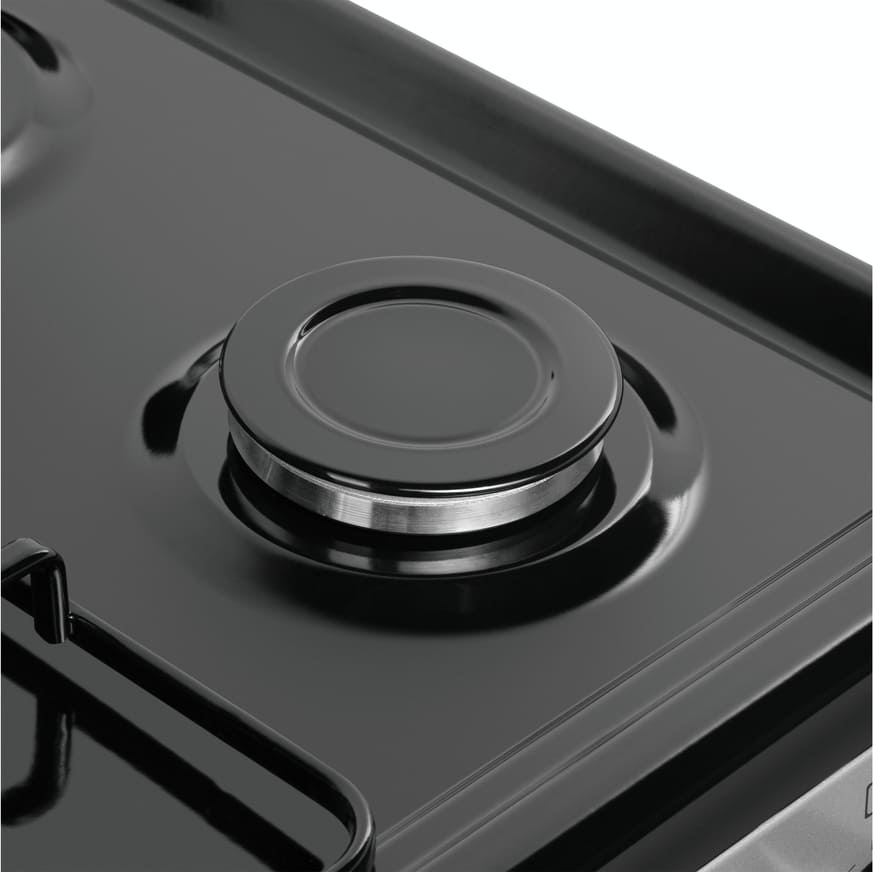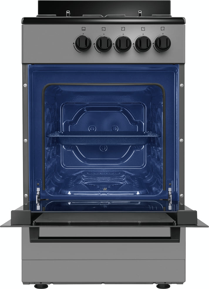 В данной модели установлена газовая варочная поверхность — эффективный нагрев, специальные механизмы для защиты вас от ожогов, плавная регулировка мощности. Стандартное количество конфорок — 4 штуки — подходит большинству пользователей. Панель сделана из металла, который обеспечивает надежность и долгий срок службы; за ней легко ухаживать.