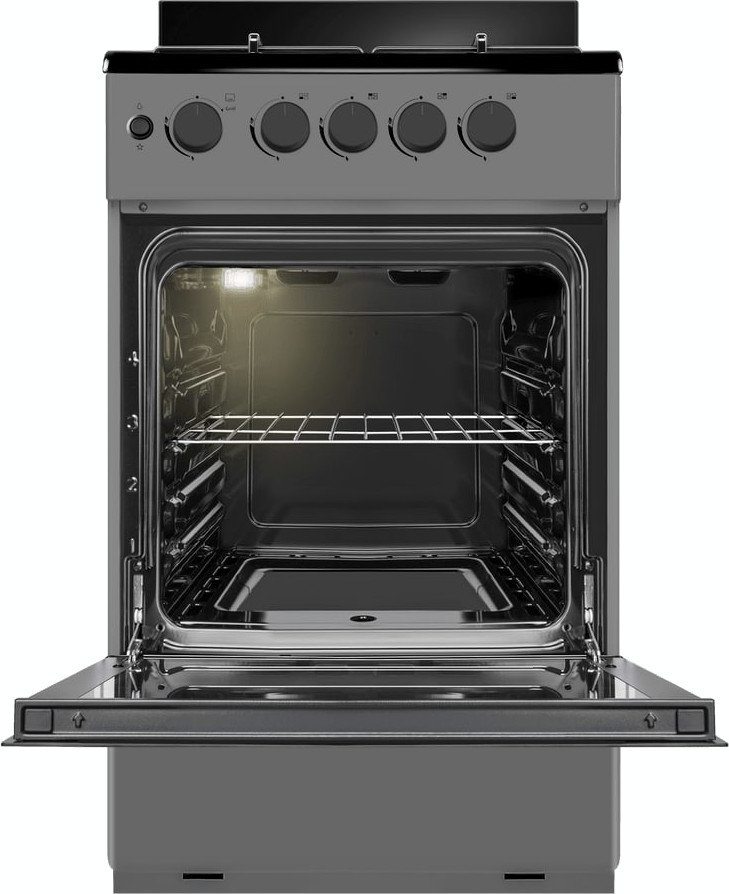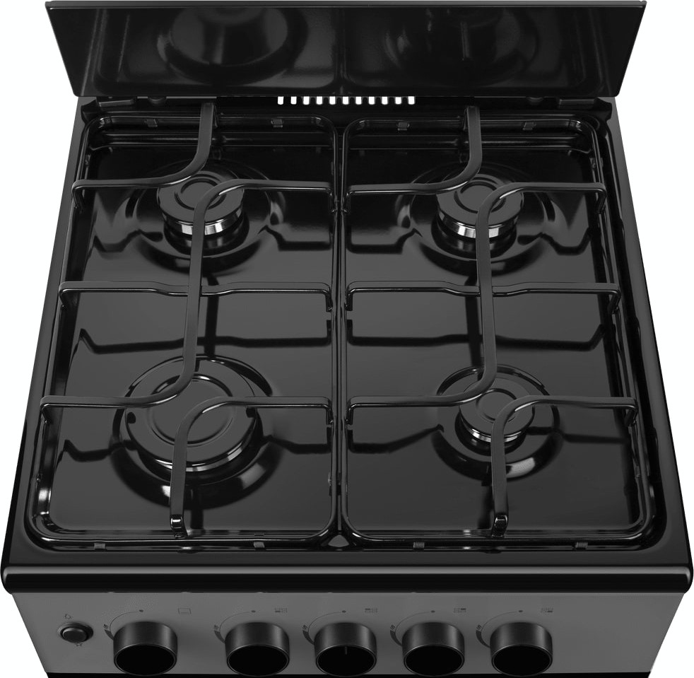 В данной модели установлена газовая варочная поверхность — эффективный нагрев, специальные механизмы для защиты вас от ожогов, плавная регулировка мощности. Стандартное количество конфорок — 4 штуки — подходит большинству пользователей. Панель сделана из металла, который обеспечивает надежность и долгий срок службы; за ней легко ухаживать.