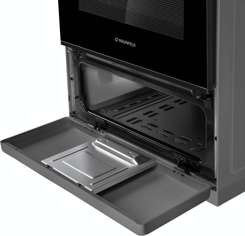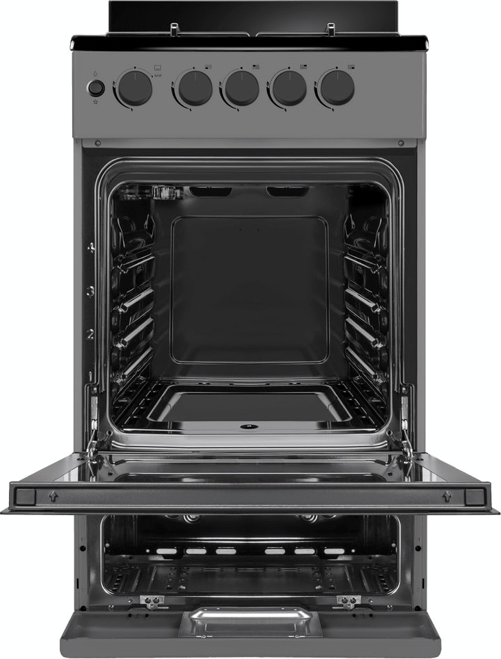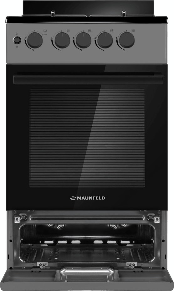 Газовая плита Maunfeld MGC50GEGR08 — отличный выбор как для квартиры, так и для частного дома. Цвет корпуса серый, он гармонично сочетается с мебелью и техникой похожих оттенков, а также может интересно выглядеть на контрасте с ними. Для управления используется удобная и понятная механическая система. Благодаря ей выбирать режимы приготовления и настраивать параметры температуры очень просто. Переключатели не только выполняют техническую функцию, но и поддерживают общий дизайн; тип элементов: поворотные + кнопки.