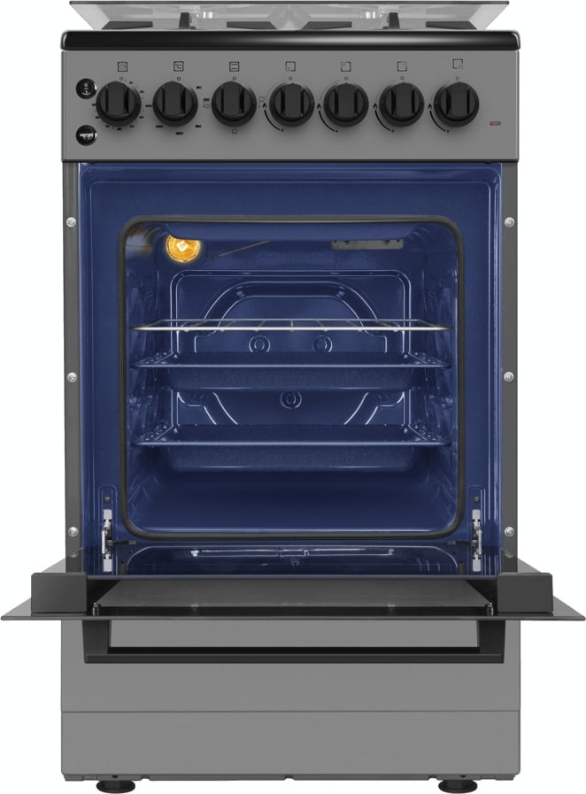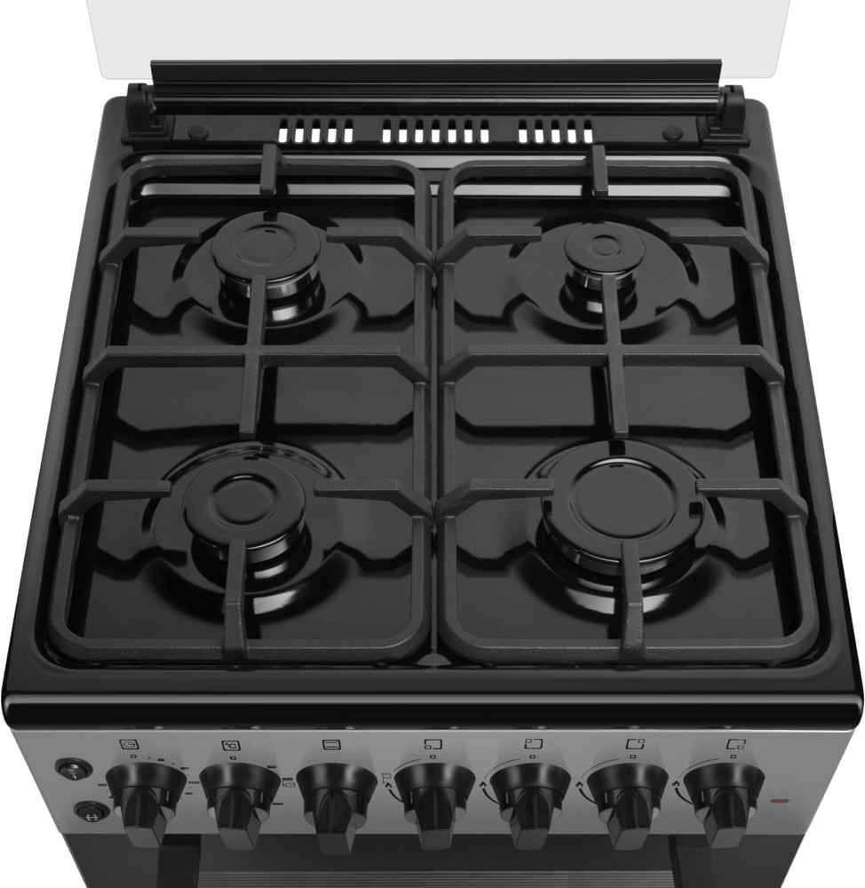 В данной модели установлена газовая варочная поверхность — эффективный нагрев, специальные механизмы для защиты вас от ожогов, плавная регулировка мощности. Стандартное количество конфорок — 4 штуки — подходит большинству пользователей. Панель сделана из металла, который обеспечивает надежность и долгий срок службы; за ней легко ухаживать.