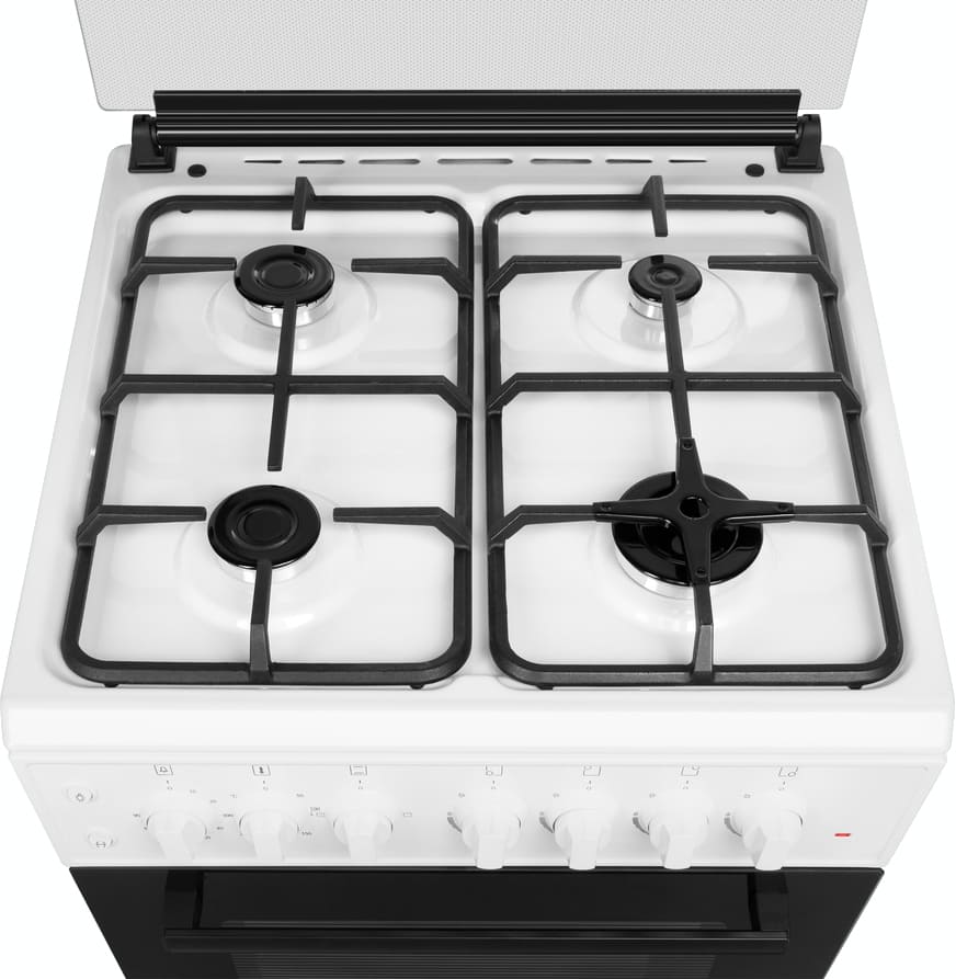 В данной модели установлена газовая варочная поверхность — эффективный нагрев, специальные механизмы для защиты вас от ожогов, плавная регулировка мощности. Стандартное количество конфорок — 4 штуки — подходит большинству пользователей. Панель сделана из металла, который обеспечивает надежность и долгий срок службы; за ней легко ухаживать.