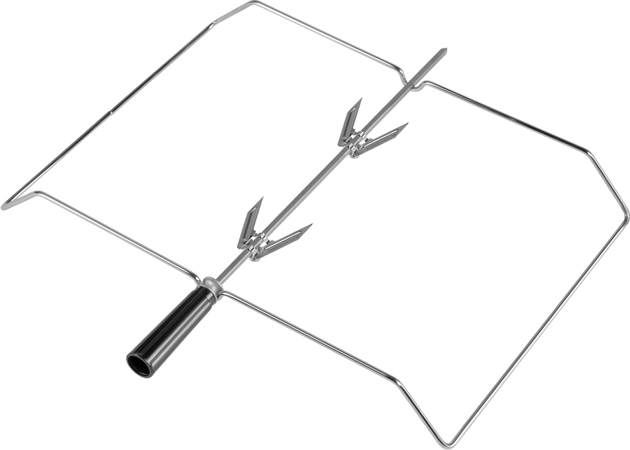 Совместное использование гриля и вертела в духовом шкафу позволяет готовить крупные, объемные блюда: большие куски мяса, цельную птицу или рыбу, баранью ногу, свиной окорок. Не менее удобен вертел при приготовлении порционных блюд — например, сосисок, шашлыка или люля-кебаба. Изготавливается вертел из пищевой нержавеющей стали, для фиксации продуктов служит специальная рама и съемные вилки с двумя или тремя зубцами. Вращающаяся конструкция позволяет быстро создать со всех сторон румяную корочку: вся жидкость при этом остается внутри куска и распределяется там равномерно благодаря вращению, так что приготовленное блюда становится особенно сочным.