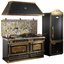 Гораздо разнообразнее представлена фурнитура в моделях в классическом, средиземноморском, деревенском или ретро-дизайне. Так, модели производства Lofra оснащаются фигурными рейлингами и поворотными переключателями цвета латуни, состаренного серебра, хрома, золота. В варочных центрах La Cornue интерес представляет круглая накладная ручка дверцы духовки серебристого цвета. Фурнитурой в стиле ретро оснащаются варочные центры производства Smeg, Kaiser, Bertazzoni, но особенно разнообразны и оригинальны модели производства итальянской компании Restart с фурнитурой из меди и латуни. Каждая такая модель изготавливается по индивидуальному проекту, и покупатель может выбрать цвет и форму переключателей, дверцы и ручек духовых шкафов и другие элементы дизайна.