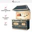 Устройства с тремя духовками также имеют один основной и две дополнительных шкафа разного объема: например, плиты Bertazzoni оснащены большой духовкой объемом 69 литров, средней объемом 54 литра и малой объемом 24 литра. Духовки располагаются в два ряда: две меньшие духовки в одном ряду, большая и ящик для посуды в другом.