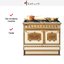 Варочный центр ELG 116 от Restart оборудован двумя электрическими духовками и вместительным ящиком для хранения принадлежностей. «Королевский» дизайн предусматривает изысканную латунную отделку и элегантные регуляторы мощности. Аналоговые часы гармонично сочетаются с общим ретро-стилем варочного центра.