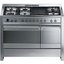 Устройства с тремя духовками также имеют один основной и две дополнительных шкафа разного объема: например, плиты Bertazzoni оснащены большой духовкой объемом 69 литров, средней объемом 54 литра и малой объемом 24 литра. Духовки располагаются в два ряда: две меньшие духовки в одном ряду, большая и ящик для посуды в другом.
