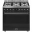 Газовая плита Smeg C95GMCA9-1 — отличный выбор как для квартиры, так и для частного дома. Цвет корпуса антрацит, он гармонично сочетается с мебелью и техникой похожих оттенков, а также может интересно выглядеть на контрасте с ними. Для управления используется удобная и понятная электронно-механическая система. Благодаря ей выбирать режимы приготовления и настраивать параметры температуры очень просто. Основная информация о процессе отображается на дисплее. Переключатели не только выполняют техническую функцию, но и поддерживают общий дизайн; тип элементов: сенсорные + поворотные.